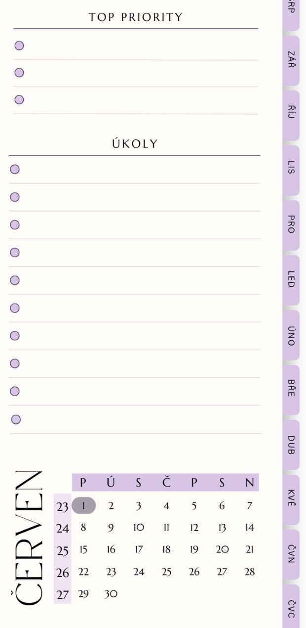 Chtěla jsem něco mezi tím. A když jsem objevila digitální diáře ve formě interaktivního PDF, nadchla mě kombinace rukopisu a flexibility. Jenže žádný z nich nebyl úplně „můj“. Tak jsem si začala navrhovat vlastní.