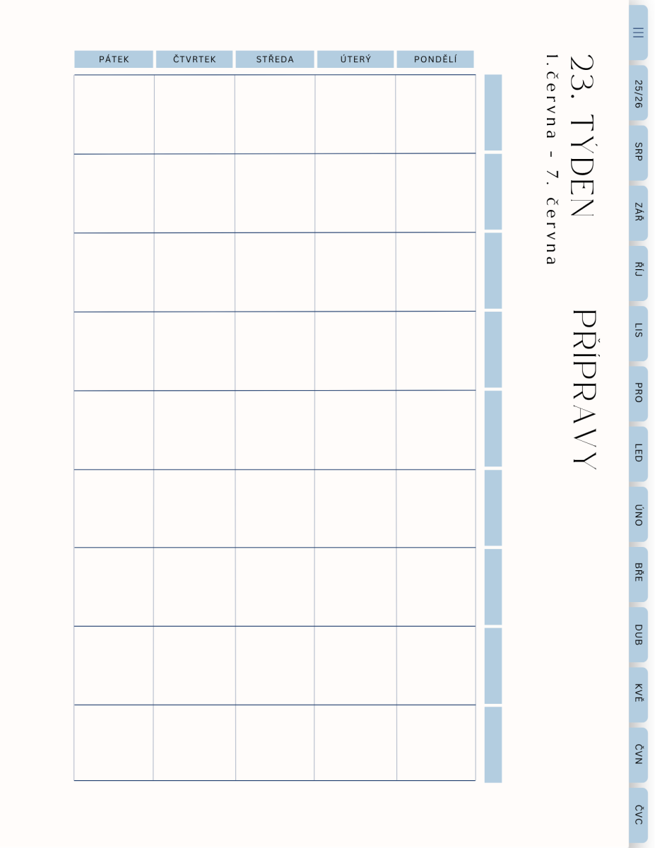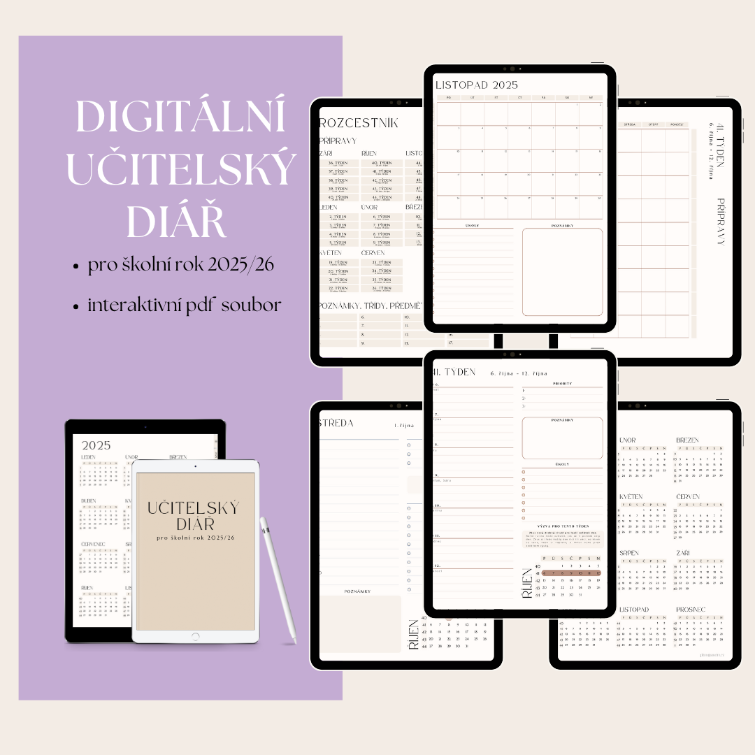 Nechybí plánovače na pololetí i čtvrtletí, místo pro přípravy, klasifikaci a každý týden tě čeká malá učitelská výzva, která tě povzbudí nebo inspiruje.
